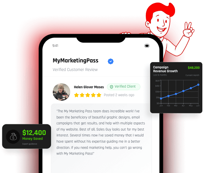MyMarketingPass is the only on-demand marketing solution that delivers your business gorgeous branding, sharp graphic design, lightning fast website development, clever copywriting, smart automation and catchy social media you need, all in one place, for one price – without the headaches and extra costs of traditional agencies, gigs, or freelancers…